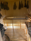 В доме две комнаты на первом этаже и две на втором. Есть всё необходимое - постельное белье, банные полотенца, посуда, даже резиновые сланцы и шапки для бани. Кастрюли и сковородки были, но мы брали и свои, в том числе и котелок для ухи. В такую аномально жаркую погоду спать было душновато, и приходилось всю ночь держать открытыми окна. Никаких сеток на окнах нет, поэтому от комаров включали на ночь фумигаторы.