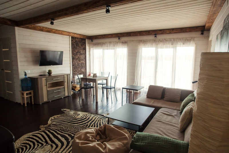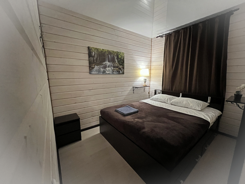 Одна отдельная спальня и раскладывающийся диван в зале. Русская баня. Своя мангальная зона. Дрова предоставляются.