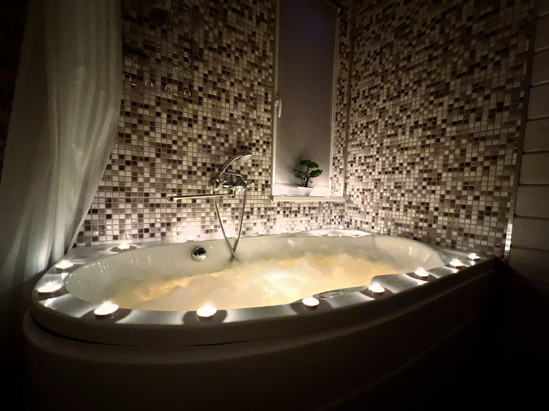 Джакузи с гидромассажем и подсветкой, чарующий камин на дровах.