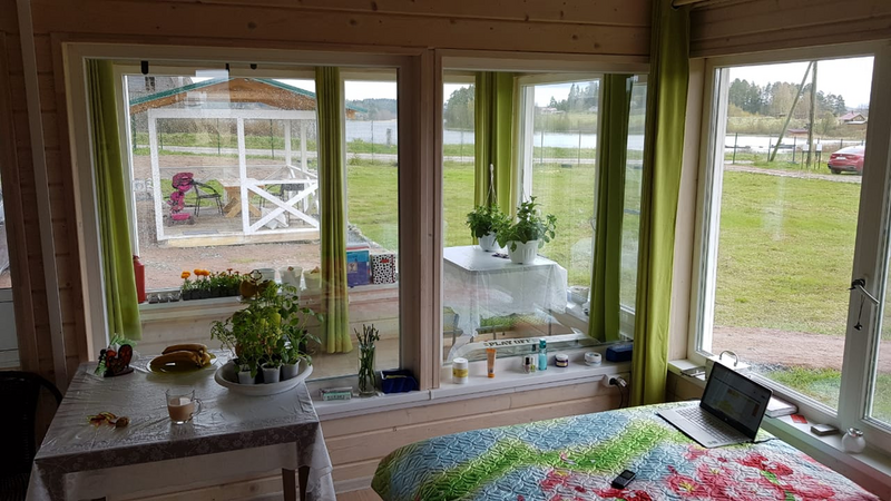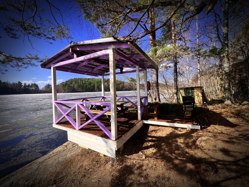 Тихое семейное место. Рядом скалы и лес. Свой причал. В доме может разместиться 6 гостей. Одна спальня с двухспальной кроватью и одной односпальной. В зале диван на 2 места и диван на террасе. Сауна в доме.