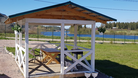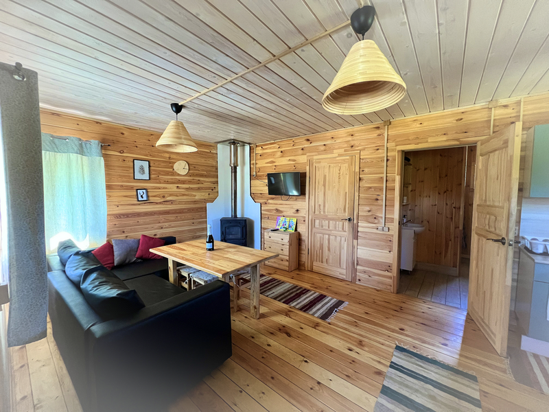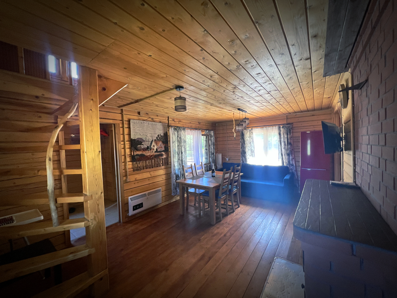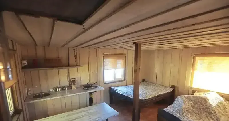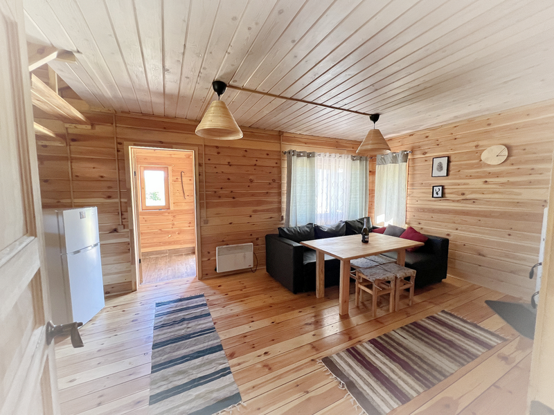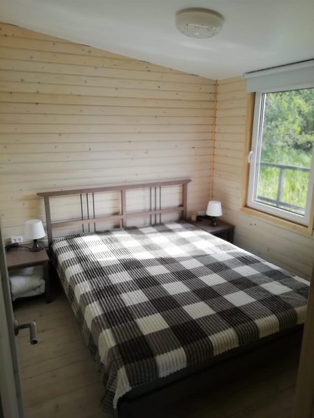 В доме две спальни, душ и туалет. Полностью оборудованная всем необходимым кухня (холодильник, плита, раковина, посуда, телевизор). Открытая терраса с мебелью и видом на озеро.