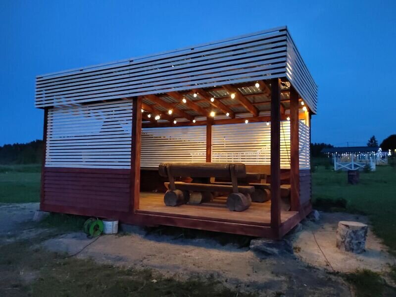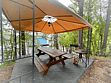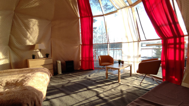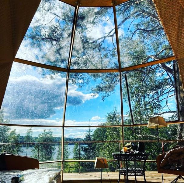 Сферический шатер в лесу, с видом на Ладогу, со всеми удобствами. Внутри: душ, биотуалет, кухня со всем необходимым, удобные кровати с чистым постельным бельем, теплый пол.