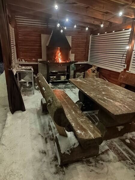 Русская баня на дровах. Можно прыгать в воду. Мангальная зона и все принадлежности имеются. Есть подъезд на машине. Бесплатная парковка. Электричество стационар. Домик теплый, зимний. Кухня и плита, вся посуда, холодильник. Постельное белье и полотенца предоставляются.
