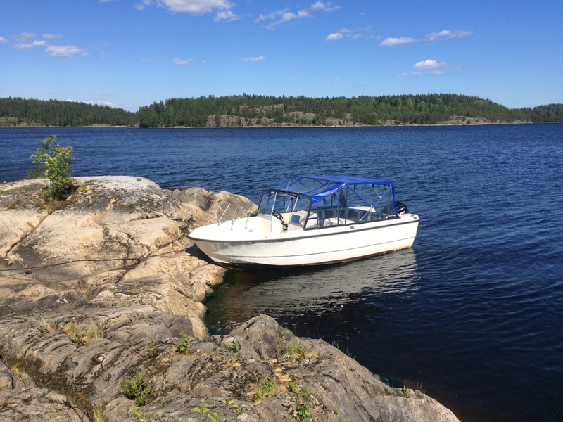 Дом находится дальше от причала, чем мы ожидали, поэтому доплыть до Лахденпохьи на своей резиновой лодке с мотором не рискнули. Продукты были закуплены на пять дней, на оставшиеся дни продукты докупили наши друзья, которые ездили из с острова на экскурсию в Рускеалу. По необходимости, нас отвозили на катере на "большую землю" и привозили обратно, а также доставляли чистую воду.