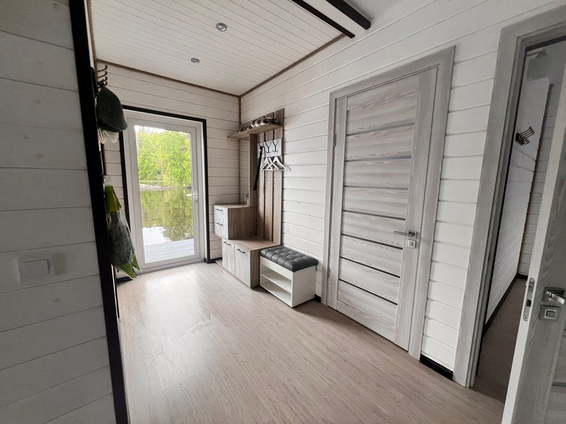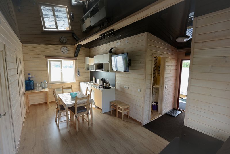 В доме есть кухня и специально оборудованный биотуалет, душ. Предоставляется постельное белье. Выход на берег есть. Терраса для купания. Ловит хороший интернет.