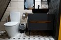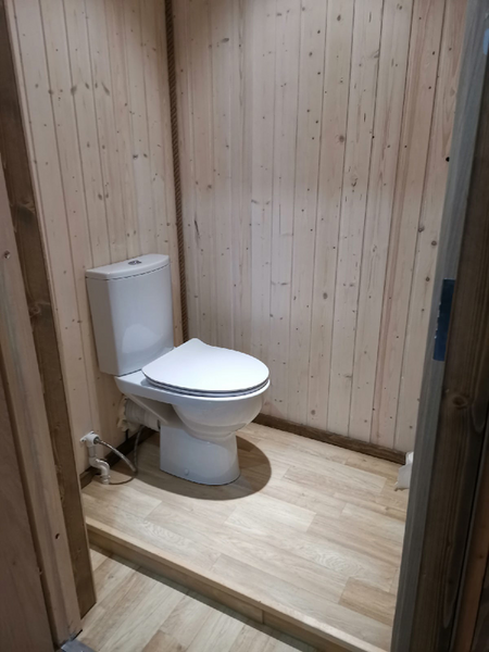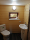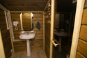 Рядом второй туалет, так вот он с "очком", но, видимо, его тоже планируют модернизировать - рядом стоит новенький унитаз.