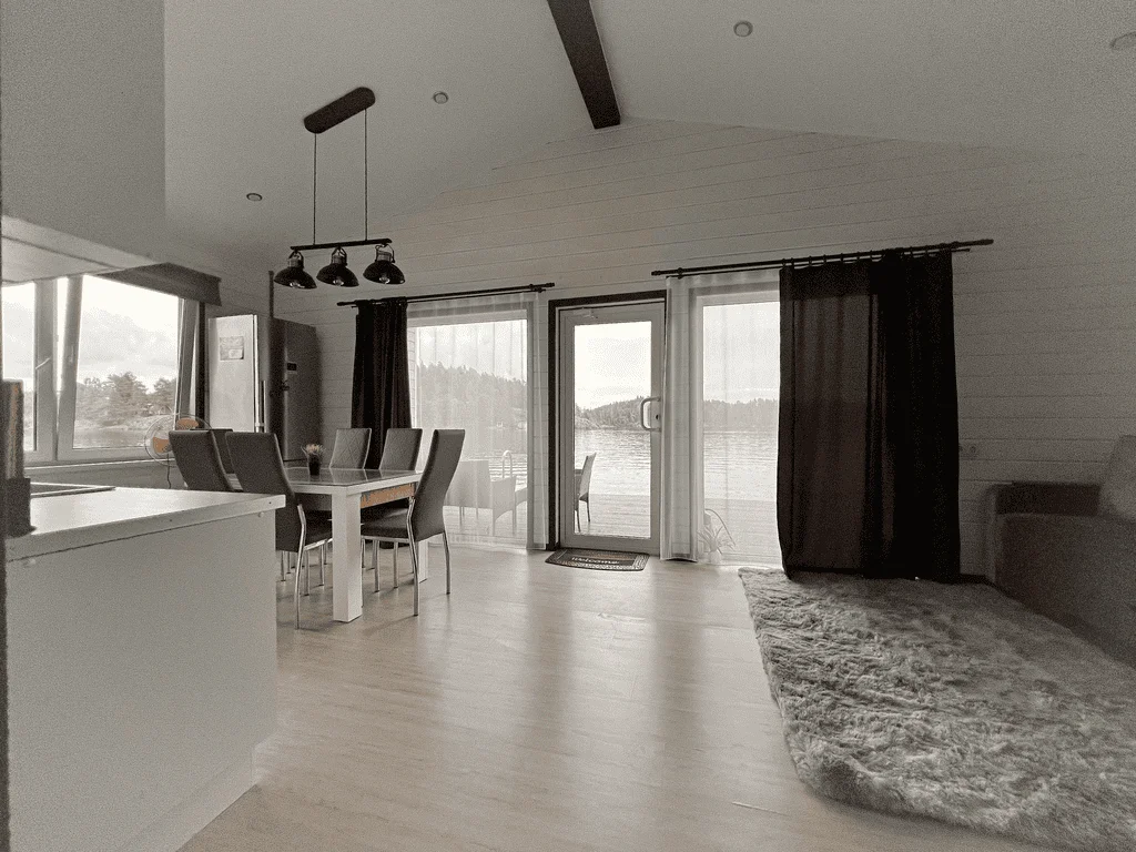 Один из самых больших плавучих домов в Карелии! Для любителей полного уединения с природой в атмосфере комфорта, без соседей и шума! Постройка июнь 2021. Расположен прямо в шхерах Ладожского озера с панорамным видом и окнами на скалы! Очень красивая бухта, полностью располагающая к рыбалке. Рядом хвойный лес (много ягод и грибов). Вокруг нет соседей — только вы, Ладога, скалы и лес!
