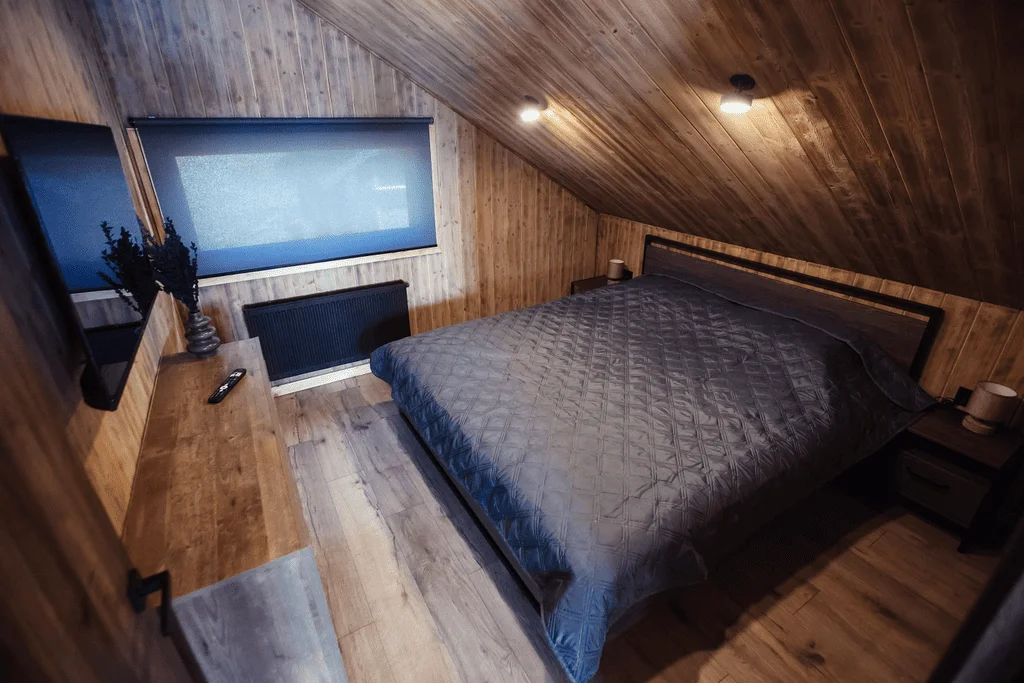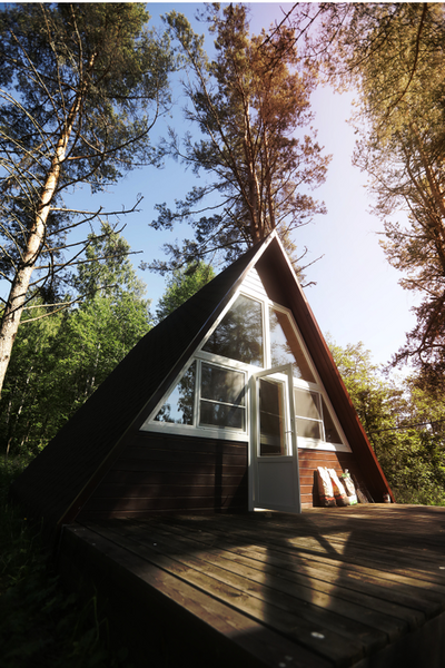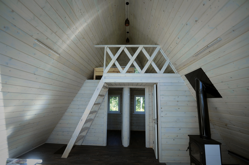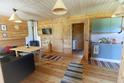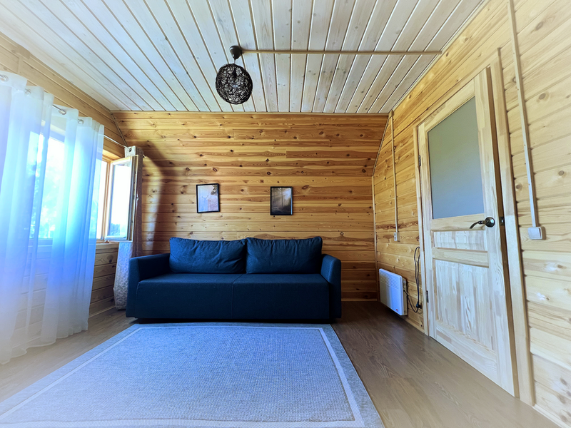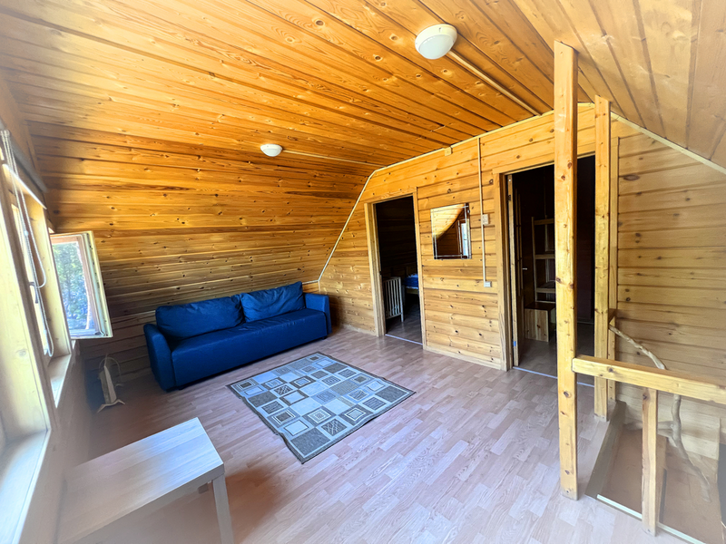 Малый дом на берегу в лесном стиле. Две раздельные спальни на 2-м этаже. В зале раскладывающийся диван.