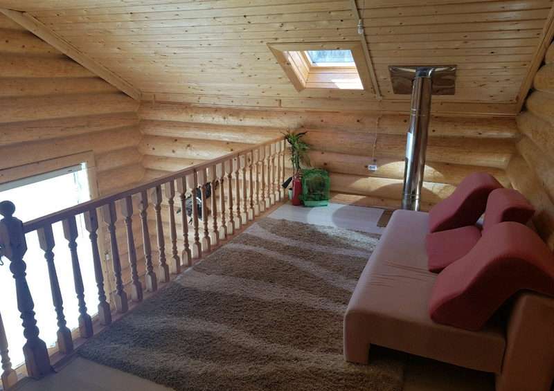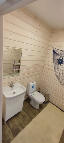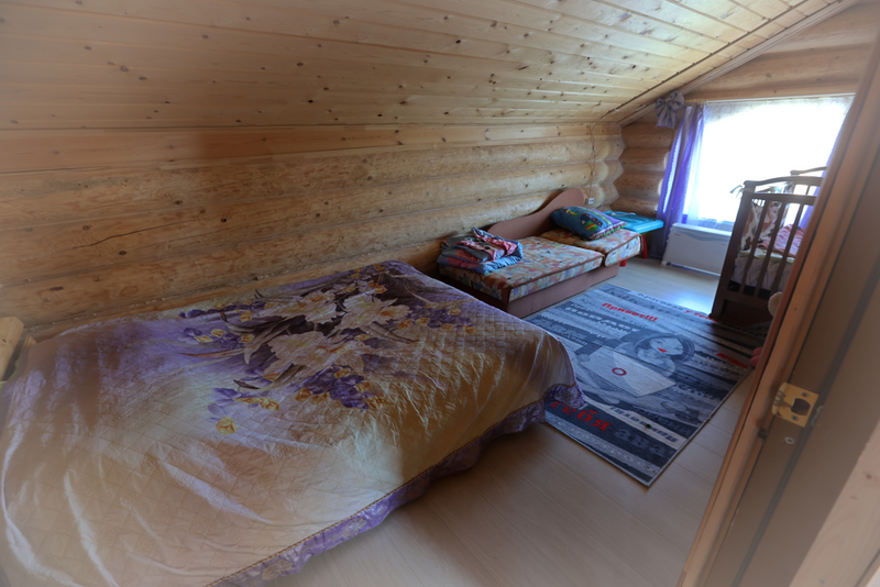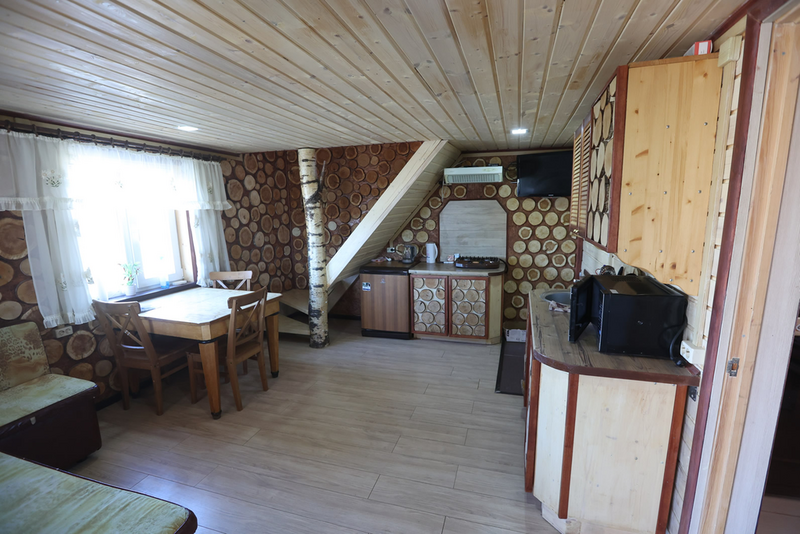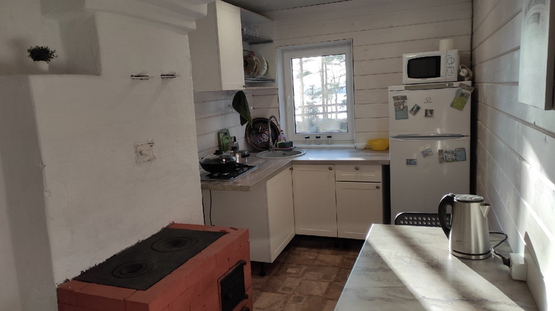 Для приготовления пищи в доме есть оборудованная кухня, газовая плита. В раковине Ладожская вода — подается автоматически. Санузел дачный, на улице. На втором этаже раскладной диван.