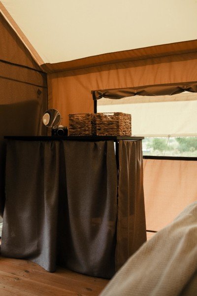 Сафари-тенты — это 24 метра уютного пространства, удобные кровати с ортопедическим матрасом и обогреватели. А если учесть невероятную природу и особенность места, где расположен глэмпинг, то все это придает сафари-тентам особенную атмосферу, которую невозможно скопировать и подделать.