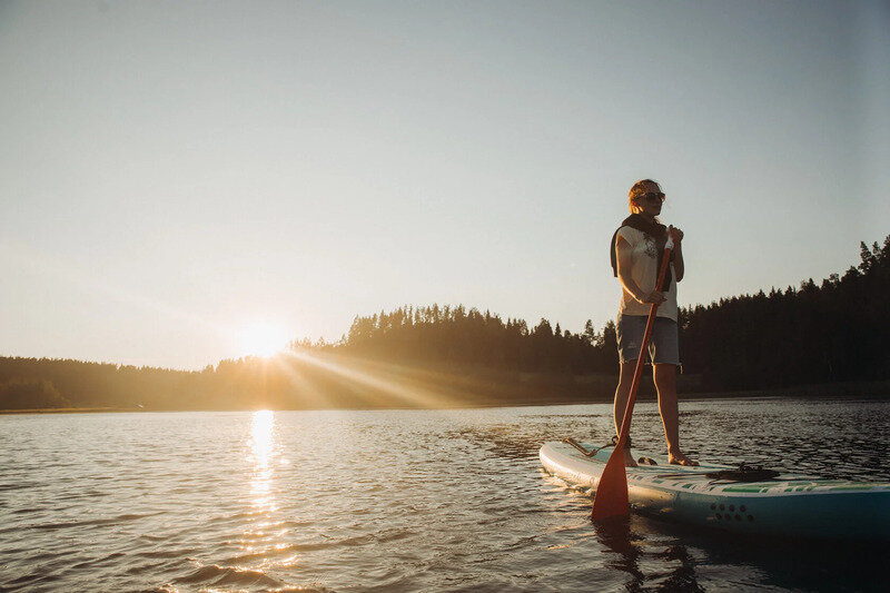 Погрузитесь в мир приключений на воде Карелии с SUP-бордами, насладитесь живописными пейзажами, умиротворяющей водой и бескрайними лесами.
