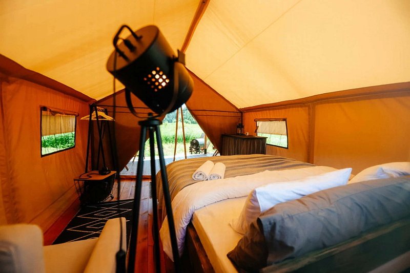 Это 32 метра уютного пространства, удобные кровати с ортопедическим матрасом, обогреватель. А если учесть невероятную природу и особенность места, где расположен глэмпинг, то все это придает сафари-тентам особенную атмосферу, которую невозможно скопировать и подделать.