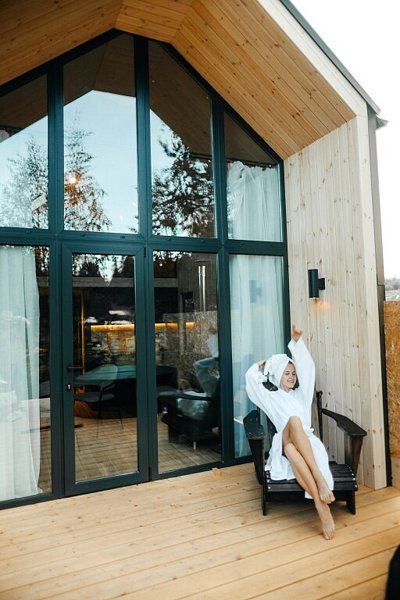 Потом мы взяли фьорд с капелью там все есть и душ и туалет ,все новое ,внутри еще камин (мы вечером зажгли было очень здорово ),так же брали купель ,нам все заранее подготовили мы просто пришли и сели наслаждаться звуками природы .Кровать кстати и там и там очень комфортная ,я спала как ребенок хотя у меня большие проблемы со сном в новых местах