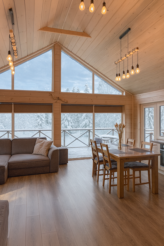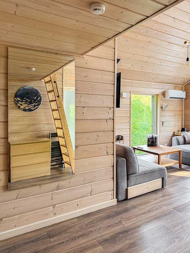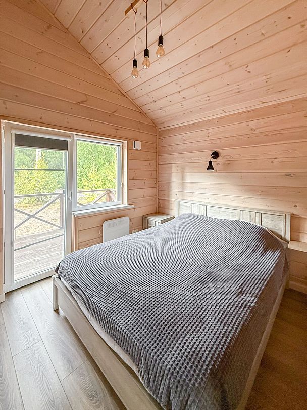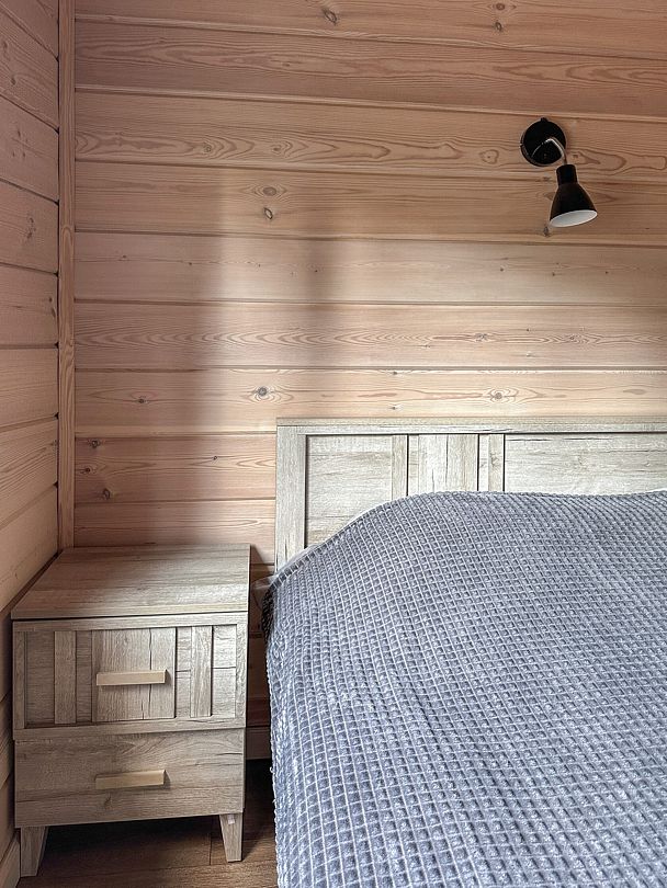 Новый уютный домик в скандинавском стиле. В доме восемь спальных мест: две комнаты с двухспальными кроватями, гостиная с большим диваном, зона отдыха на втором этаже с двухспальным матрасом (как на кроватях). Все матрасы относят к премиум сегменту, поэтому спать на них одно удовольствие.