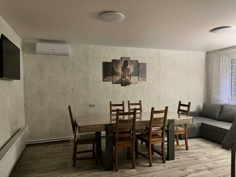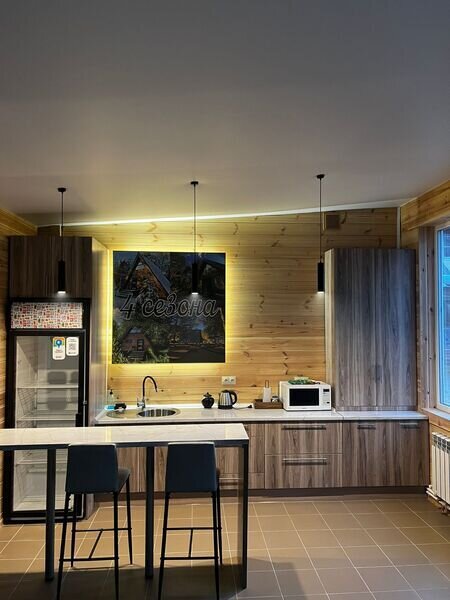 На первом этаже небольшая кухня с техникой (холодильник, СВЧ, электрический чайник, духовка и варочная панель), посудой для самостоятельного приготовления. Также на первом этаже расположена гостиная с большим обеденным столом, санузел с душевой кабиной. На втором этаже расположены 4 спальни, санузел, также гости могут выйти на большой балкон. В теплое время года, на балконе можно проводить уютные вечера.