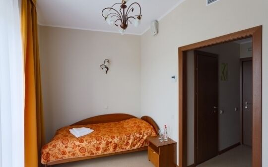 В номере: односпальная кровать, душ, санузел, холодильник, телефон, телевизор, кондиционер.