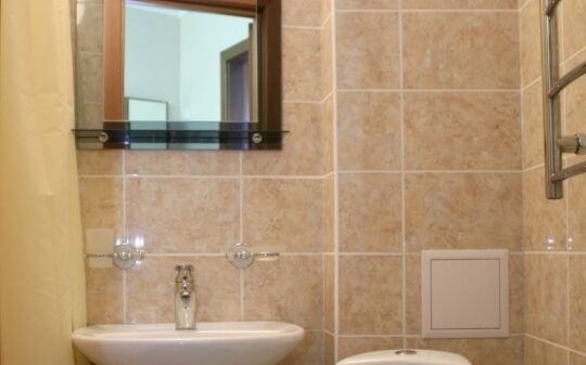 В номере: двуспальная кровать, кондиционер, фен, холодильник, телефон, телевизор, душевая кабина.
