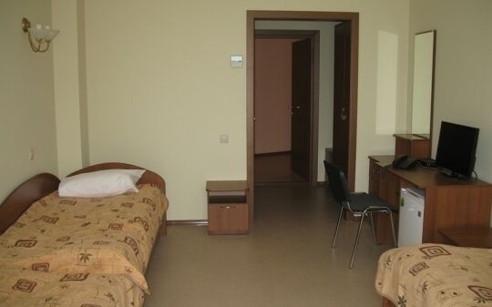 В номере: две односпальной кровати, душ, санузел, холодильник, телефон, телевизор, кондиционер.