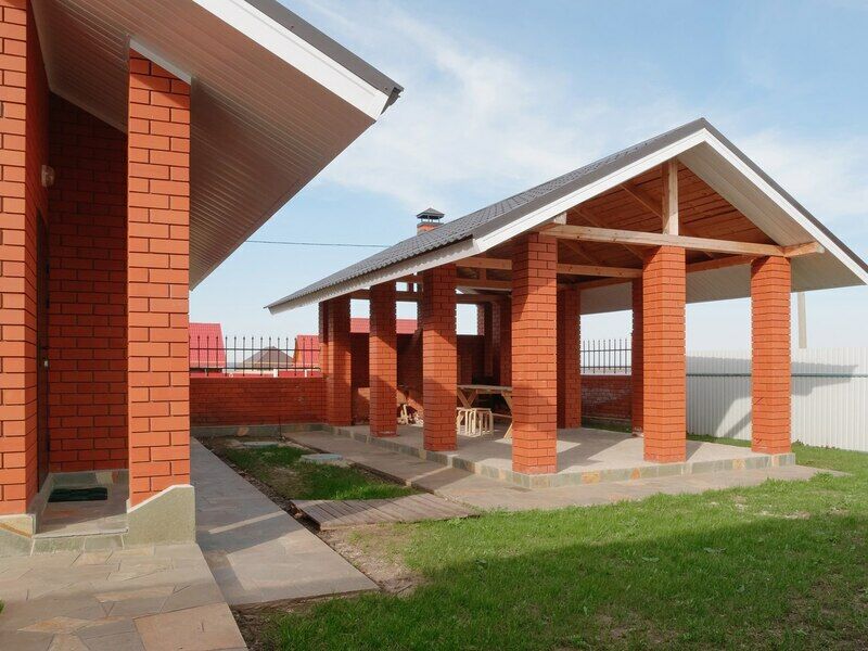 На огороженной территории с видеонаблюдением кроме домиков расположены баня и две больших беседки с мангалами. Для приготовления пищи можно воспользоваться большой кухней со всем необходимым, мангалом и казаном.