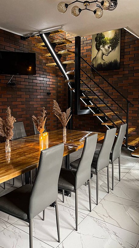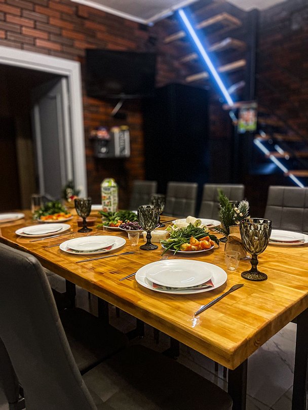 Большой зал с кухней, Сауна с комнатой отдыха и отдельным выходом на улицу.