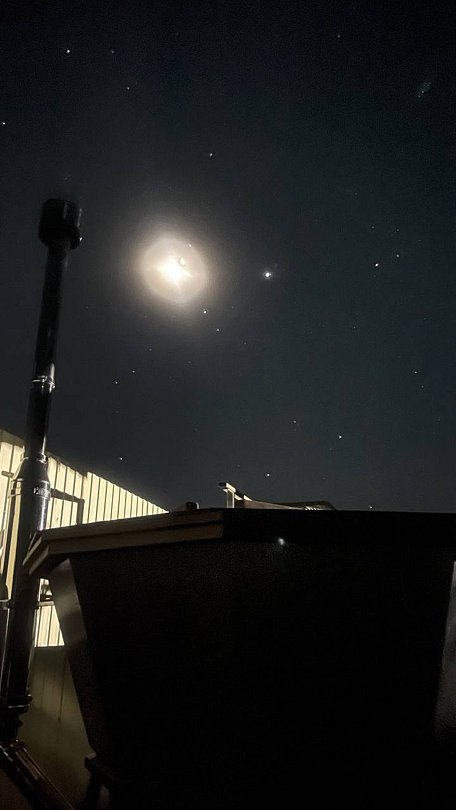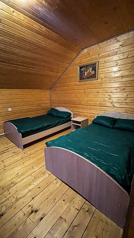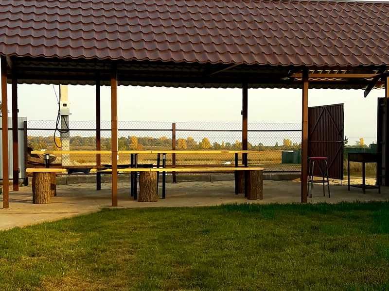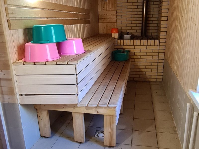 Сауна находится в домиках с комнатой отдыха и отдельным выходом на улицу.