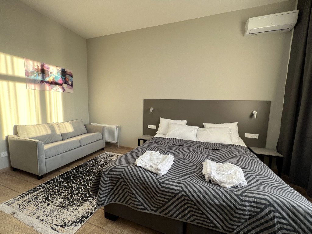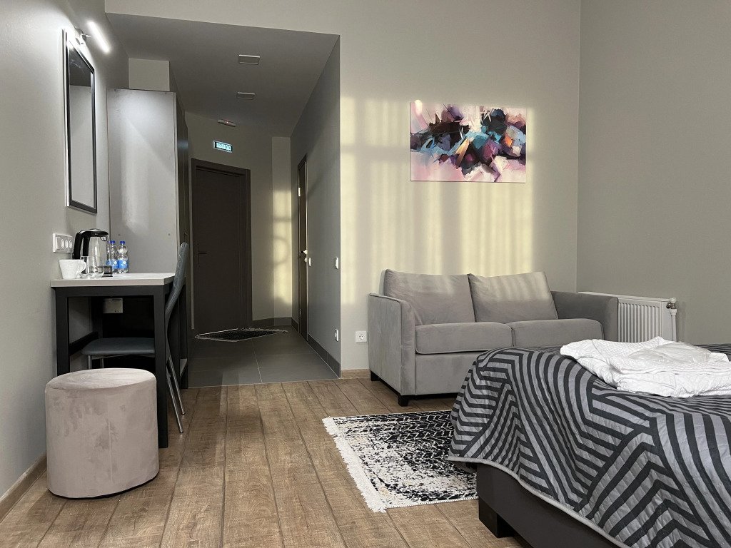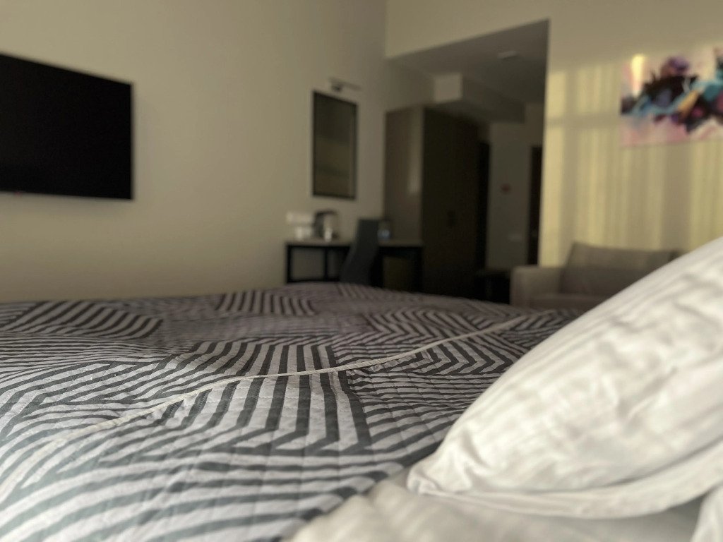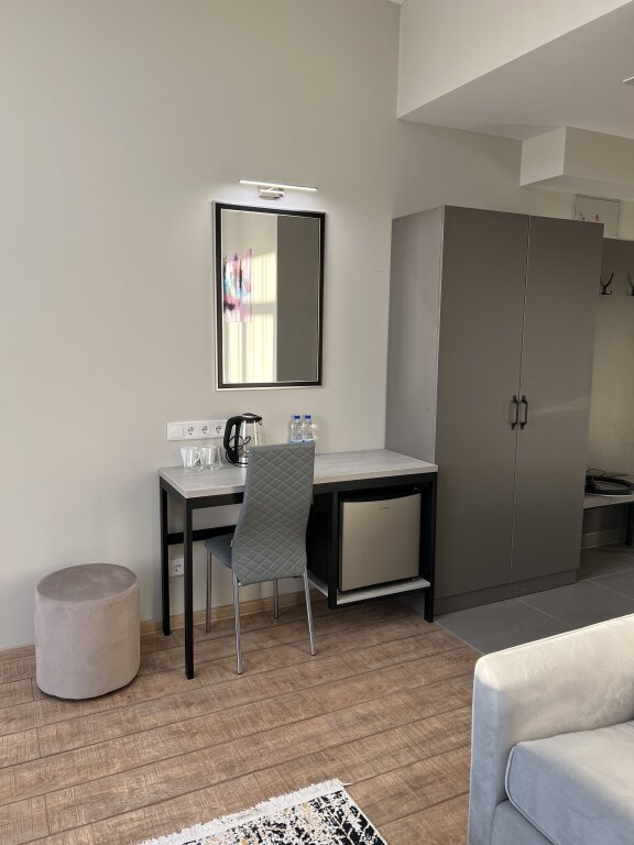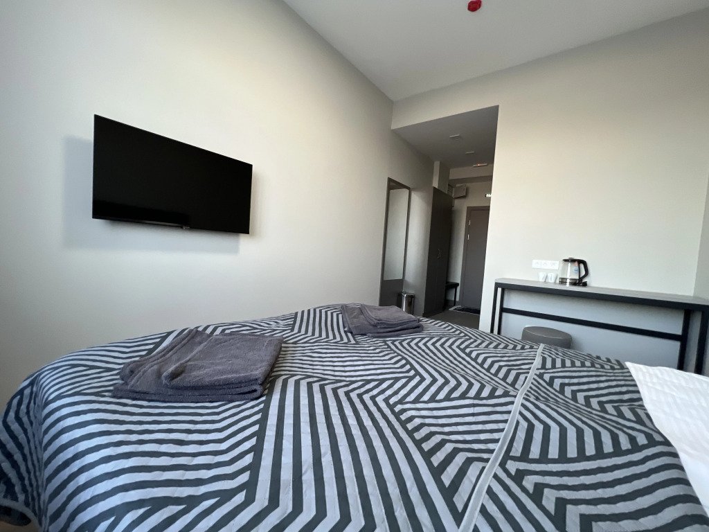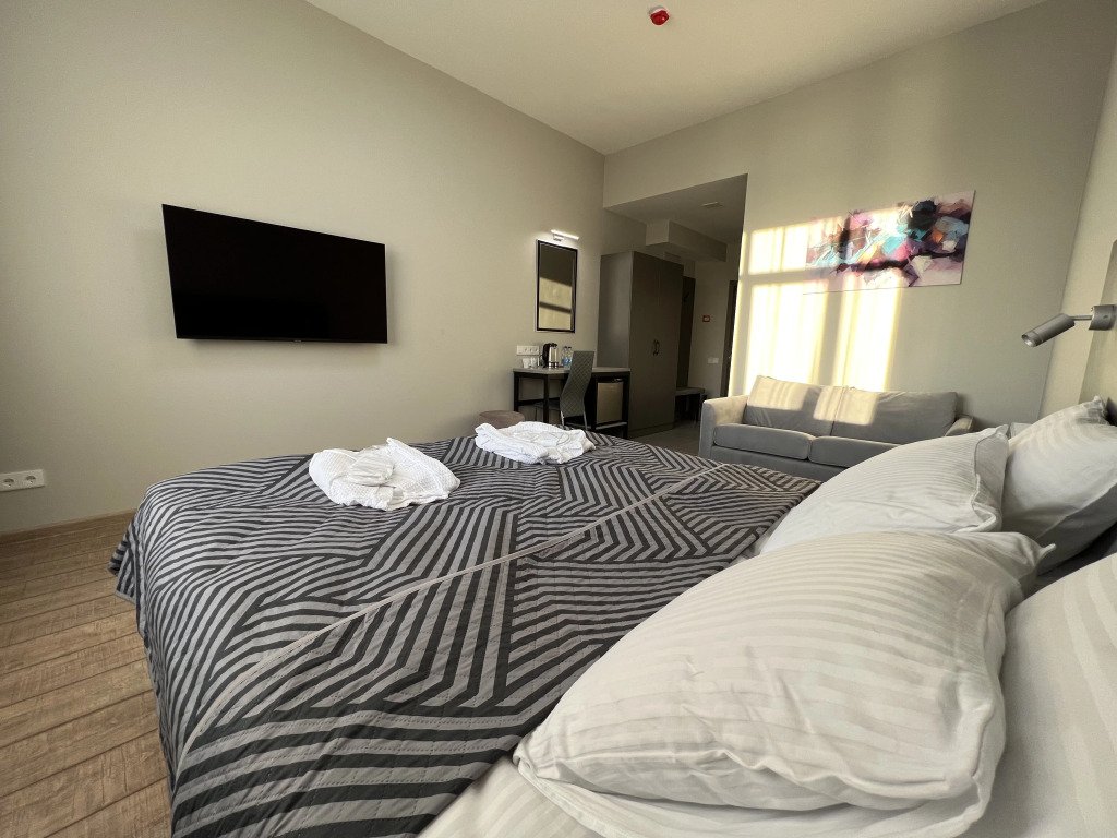 Номер уютно обставлен и оснащён необходимым, чтобы отдохнуть после долгого и насыщенного дня. Имеются телевизор и халат. Перечисленные услуги есть не во всех номерах.