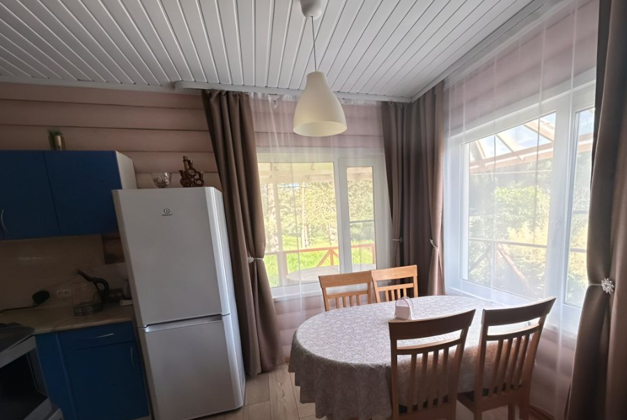 Дом полностью оборудован всем необходимым для комфортного проживания, включая посуду и бытовые принадлежности. На первом этаже есть гостиная, кухня и веранда-терраса, а на втором находятся две спальни (все удобства включены).
