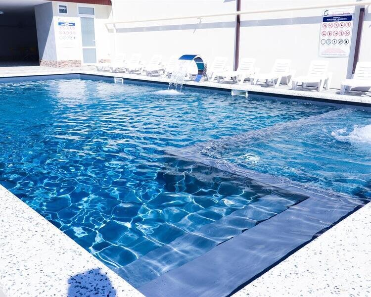 Семейный отдыхДостоинстваНомера в отеле чистые, с хорошей звукоизоляцией. На территории находится большой, ухоженный бассейн.Еще один плюс – в здании есть супермаркет, что очень удобно .В непосредственной близости расположено множество столовых, шашлычных, магазинов и аптек. До моря можно дойти пешком за 10-15 минут. В целом, отдых был приятным, хочется вернуться сюда вновь.