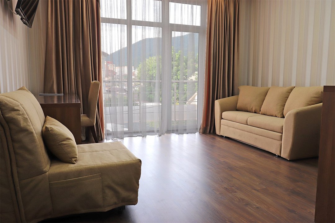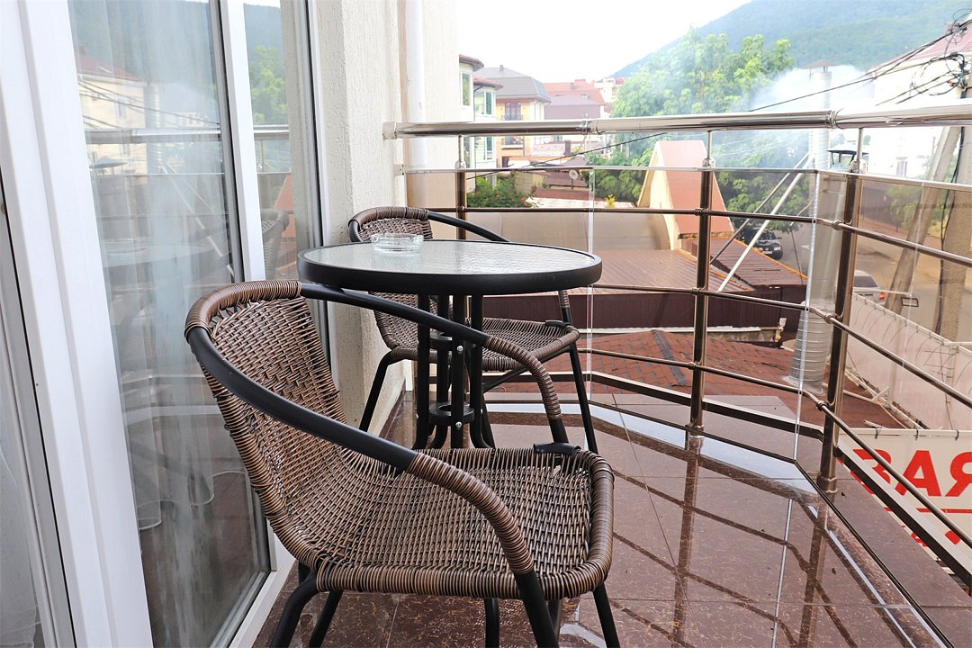 Семейный отдыхДостоинстваОтлично! Отель оправдал ожидания.Нам предоставили уютный номер с ванной и прекрасным видом на горы. Администратор была очень приветливой, а обслуживание – оперативным. В отеле есть общая кухня, а до моря всего несколько минут ходьбы.