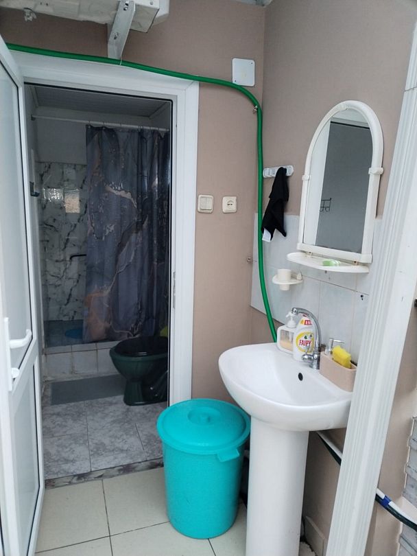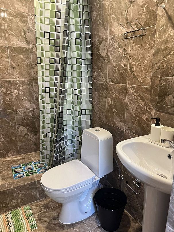 Общая ванная комната: душ, раковина, туалет.