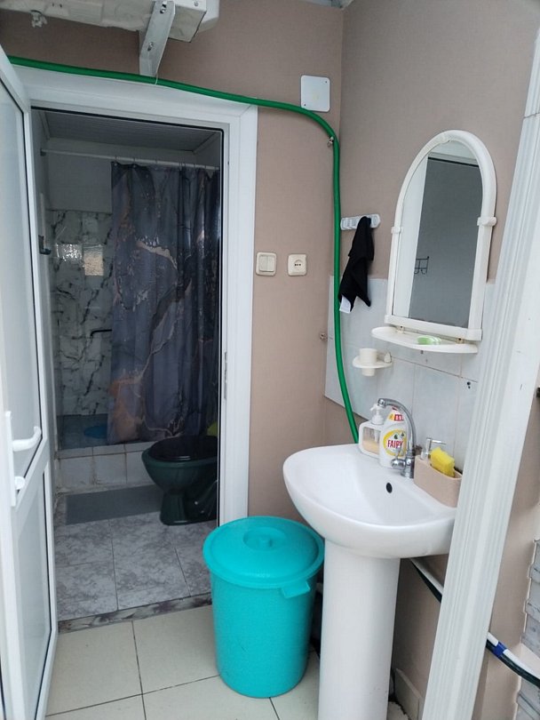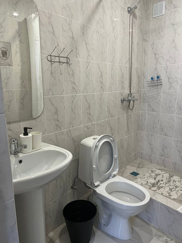 Индивидуальная ванная комната: душ, раковина, туалет.