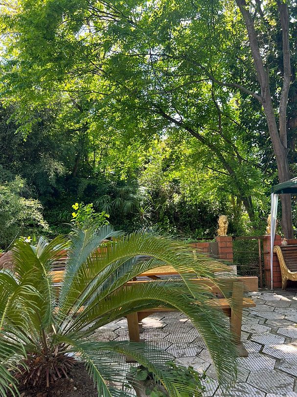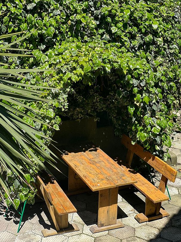 На террасе стол и стулья.