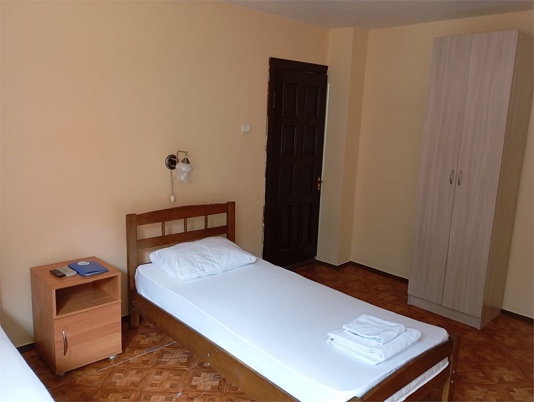 Уютный однокомнатный номер площадью 25 кв.м. Оборудован всем необходимым для полноценного и комфортного отдыха. В номере две односпальные кровати, душевая комната (душ, туалет), кровать (2 односпальные), шкаф для одежды, тумбы, холодильник, телевизор, чайник, сплит система.Услуги и удобства