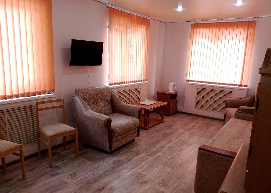 Просторный двухкомнатный номер площадью 40 кв.м, разграниченный на гостиную и зону отдыха с двуспальной кроватью и мягкой мебелью. Идеальное решение как для комфортного семейного отдыха, так и для деловой поездки. Номера расположены на 2 этаже.Услуги и удобства