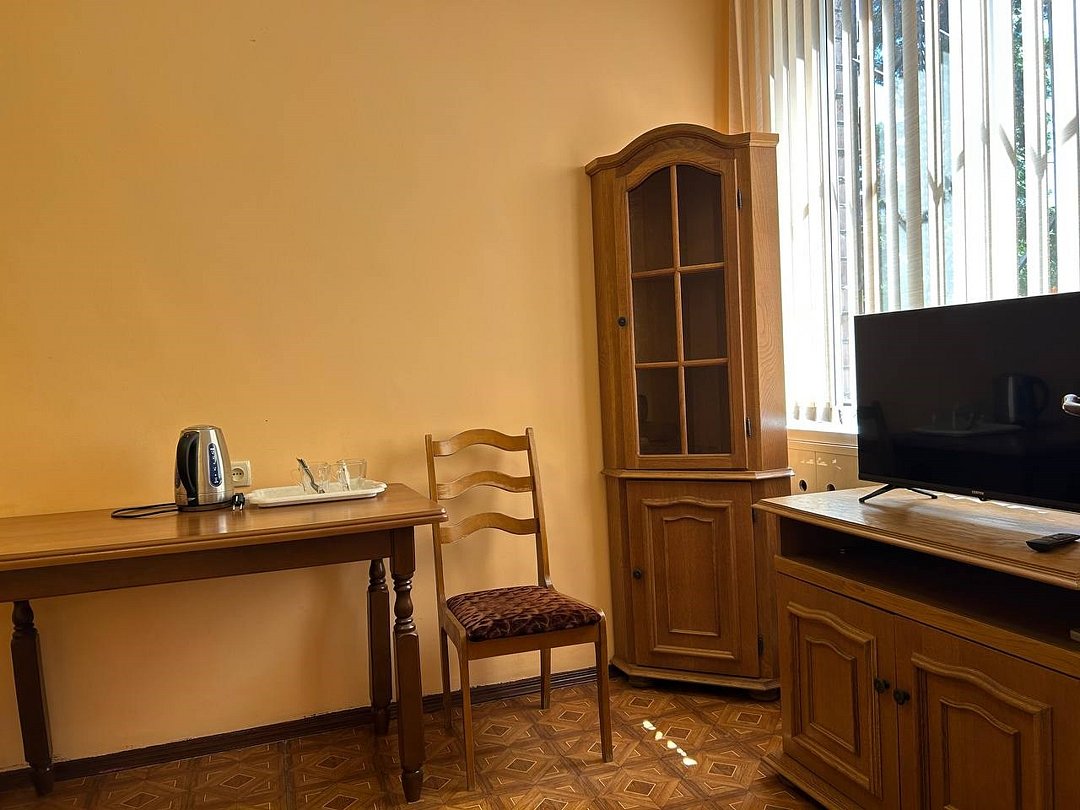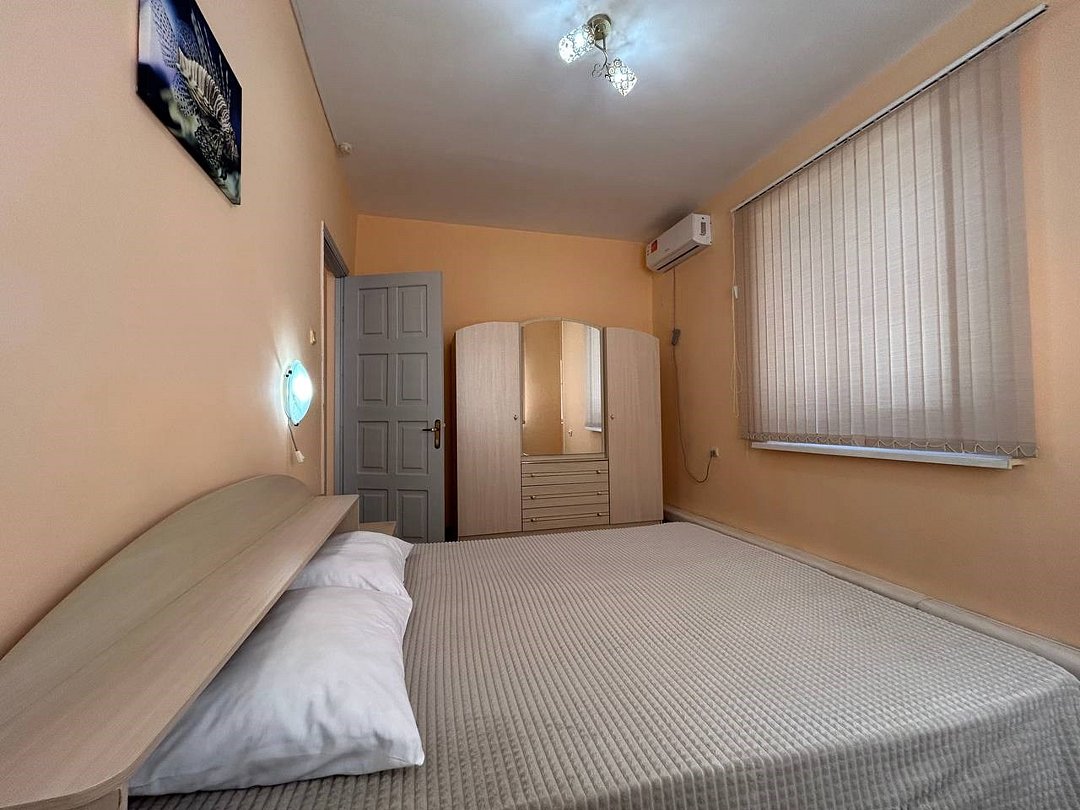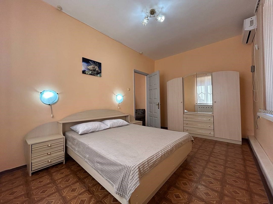 Wi-Fi, холодильник, кондиционер, двуспальная кровать, диван, шкаф для одежды, вешалки, две комнаты, раковина, душ, вид во двор, стаканы, туалет, сушилка для белья, телевизор со Smart TV, без питомцевВ номере