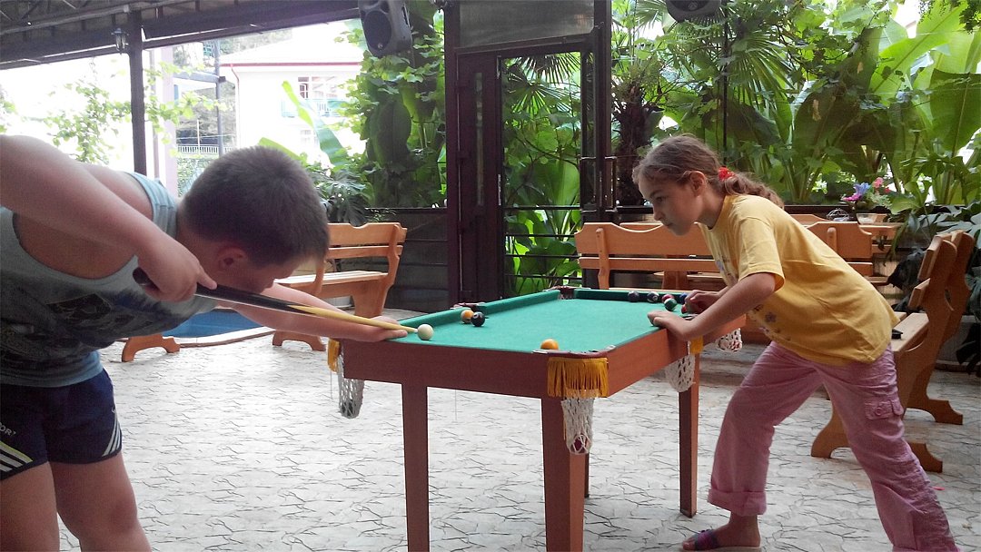 В баре вам предложат натуральный кофе, коктейли, разливное пиво. А детей можно побаловать мороженным, молочными коктейлями и другими сладостями.