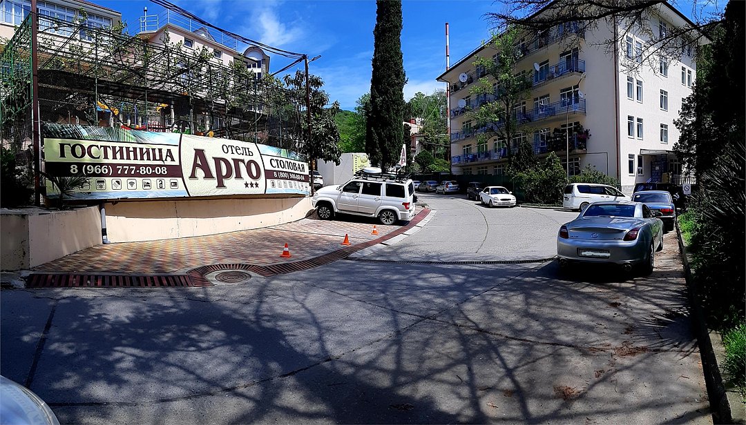 Отель «Арго» расположен в популярнейшем курортном поселке Краснодарского края — Лазаревском, на Сочинском шоссе, 59 — в очень живописных местах, поражающих своей красотой и экзотичностью. Неподалеку находится морское побережье и горное ущелье с прохладной речкой и водопадами, привлекающее своей чарующей природной красотой, рядом с ущельем есть оборудованные места для пикников. У гостей отеля есть возможность спокойно отдохнуть на лоне природы, при этом до центра города с его разнообразной туристической инфраструктурой можно быстро добраться на общественном транспорте (всего пара остановок), рядом с отелем работает магазин.