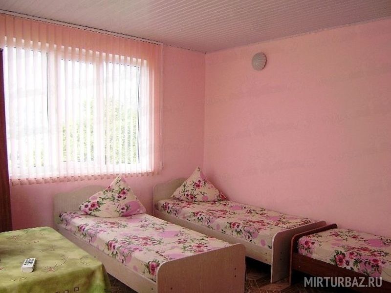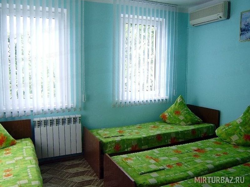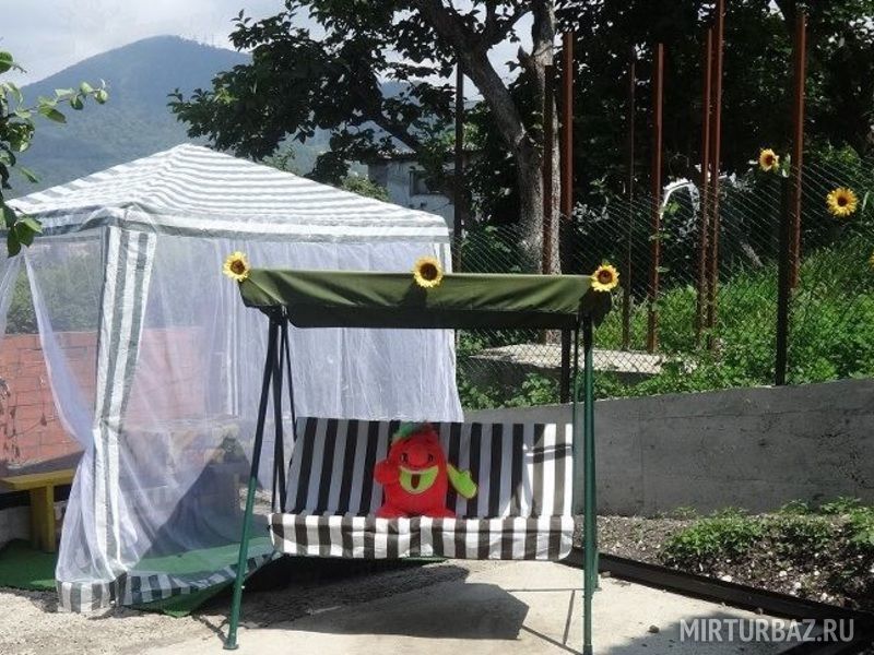 Территория гостевого дома поразит вас своими зелеными насаждениями. Для вашего удобства на территории есть общая кухня со всеми кухонными принадлежностями. Для размещения дом предлагает всего два номера на троих или четырех человек. Вы сможете проводить свои вечера за приготовлением шашлыка или просто за беседой в замечательной зоне отдыха. Для детей оборудована простая, но очень уютная детская площадка. Все ближайшие пляжи идеально подходят для детей своим пологим дном и теплой водой, поэтому эти места особенно рекомендуют для семейного отдыха.