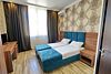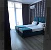 Двуспальная кровать, тумбочки, шкаф, трюмо, большое зеркало. телевизор, мини холодильник, кондиционер.