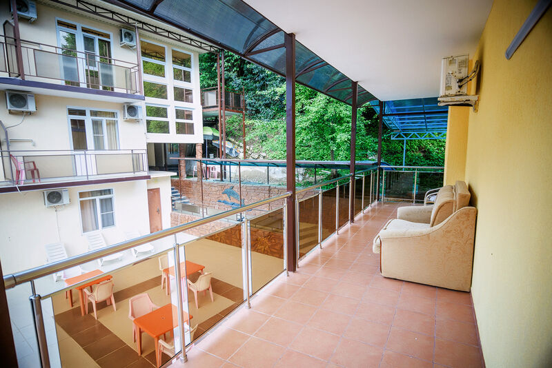 Путешествие с семьейначало сезона 2023Снимал номер №17 для жены на 4 этаже дополнительного корпуса. Очень удачное расположение - балкон с видом на горы, балкон в тени весь световой день, так же и море немного видно. Расположение отеля удачное - немного от дороги отойти вглубь к горам - пару минут - и уже не слышно ни ЖД, ни шум машин с дороги. Шикарные виды с балкона в течение дня, тишина и релакс гарантирован, ну если не будет орущих детей в отеле или у соседей, как повезет. Отель крайний, упирается в гору с лесом, зелень смотрит в окна, пение птиц, единение с природой – все супер! Путь на море - уклон минимальный - не надо обратно в горку топать, и до моря идти мин 5-10 не спеша. Так же все развлечения, магазины рядом – дельфинарий, ТЦ Бирюза (банкоматы), пятерочка, магнит, К&Б, 2 приличные столовые с большим ассортиментом в минуте ходьбы и куча едален в самом Лазаревском – от столовых до кафе, шашлычных, наливаек итд. Мы были в начале сезона – поэтому хозяева еще не открыли свою столовую, а так и в отеле можно заказывать еду, под конец отдыха уже появилось меню под заказ. Номер приличный, все есть, если чего нужно – все дадут, без проблем. Уборка по расписанию, все норм. Вода была всегда. Бассейн с подогревом – чистый, есть пара гидромассажей, бассейн крытый – не летит в него листва с гор, удобно купаться, если еще вода не прогрелась на море. Есть большие семейные номера с выходом к бассейну. Над бассейном построили место для шезлонгов, осталось перила сделать, наверное, сейчас уже все готово для загорания. Можно пешком сходить в Свирское ущелье – все рядом. Или на маршрутке минут 10 ехать до Берендеева царства – там побольше водопадов и все в тени деревьев, в жару комфортно. Хозяева приветливые, никакого негатива не было, по сравнению с предыдущими поездками в Анапу (когда дети были маленькие) – так там претензии какие-то были всегда от хозяев – и по бассейну, и, например, что нельзя варить кукурузу на общей кухне (типа, за свет больше платить) итд. Так же хозяева пошли навстречу, у нас был ранний заезд и поздний выезд, сделали хорошую скидку по оплате. Все понравилось - условия, атмосфера отдыха, отношение хозяев и персонала. Отель рекомендую!
