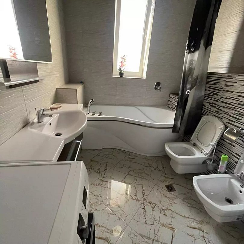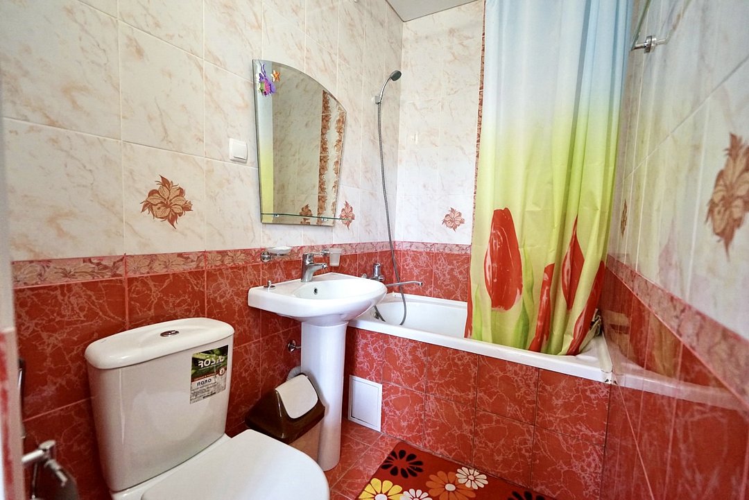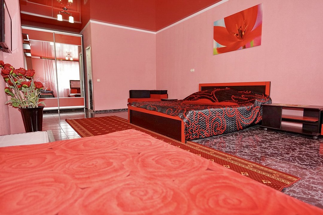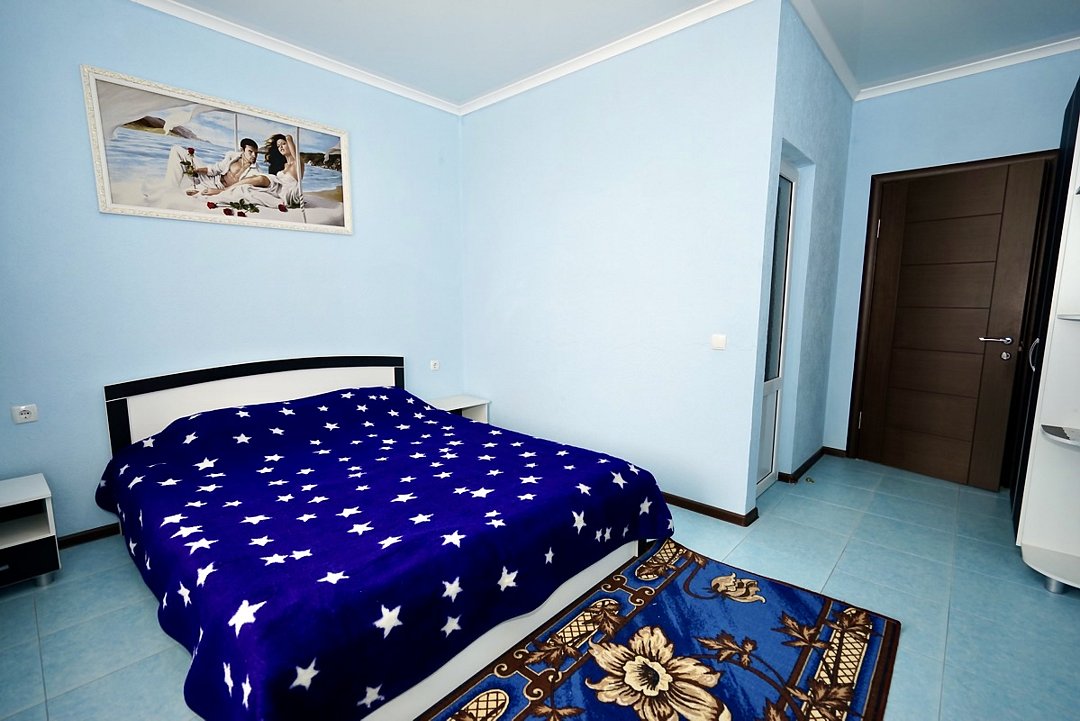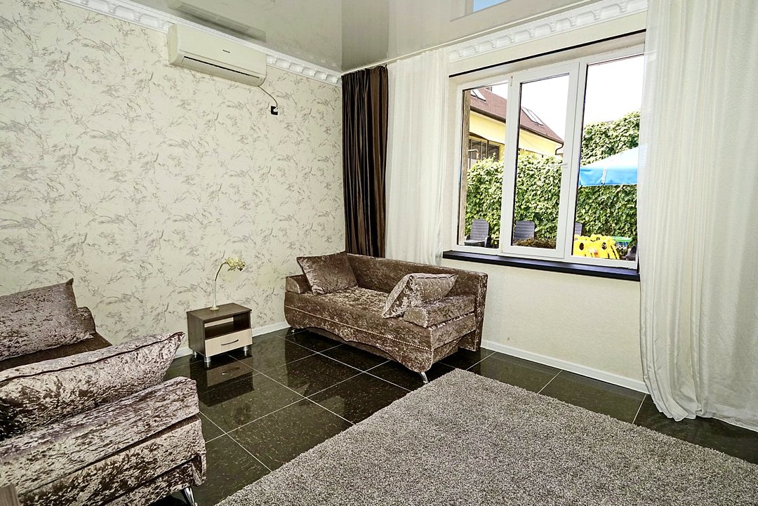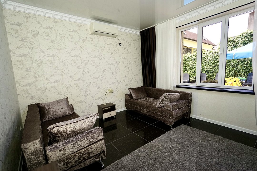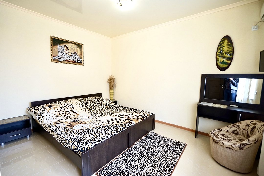 Гостям предлагаются просторные номера, оснащенные всем необходимым для комфортного проживания: кондиционером, холодильником и телевизором. Ухоженный двор с зоной для отдыха, столами под навесами и летней кухней создает атмосферу уюта и расслабления. В дополнение к этому, гости могут наслаждаться теплым бассейном с детской горкой, а также зоной для барбекю, что делает вечера незабываемыми.