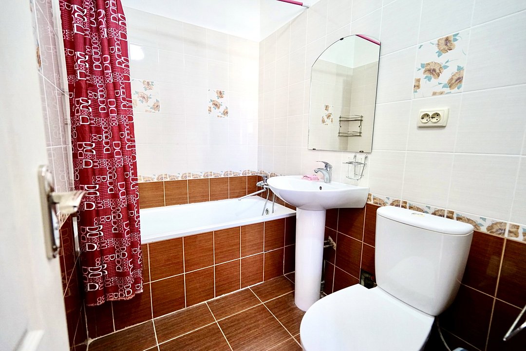 Техника: Телевизор, холодильник, кондиционер, микроволновка, чайник, плита, духовка. Санузел, интернет, постельное белье, полотенца, посуда.