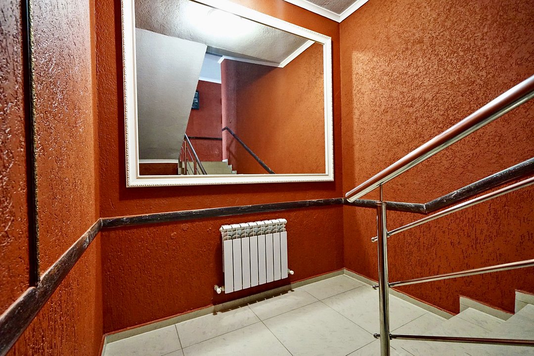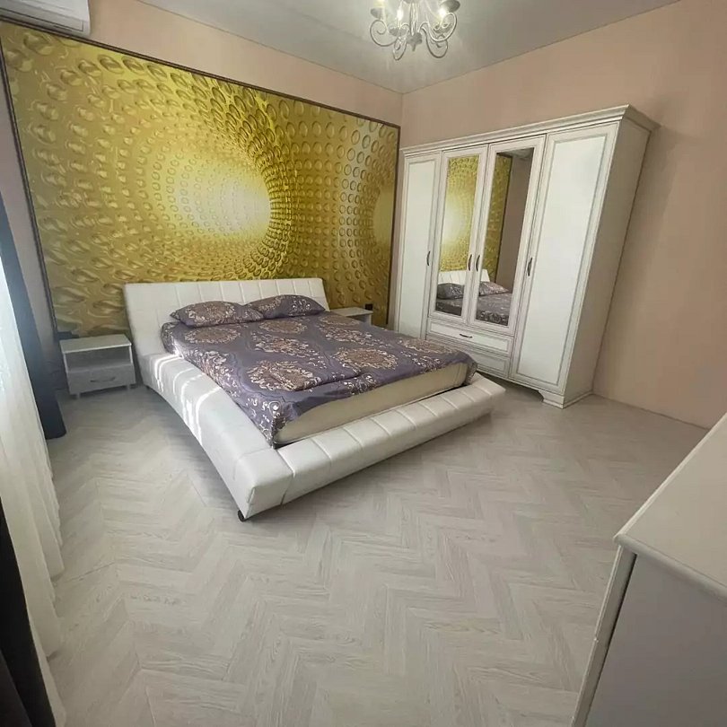 Этаж под ключ 120 м² (две изолированные комнаты и одна проходная). Собственная кухня, собственный дворик. Мебель: стулья, стол, шкаф, прикроватные тумбочки, прихожая, вешалка, зеркало.