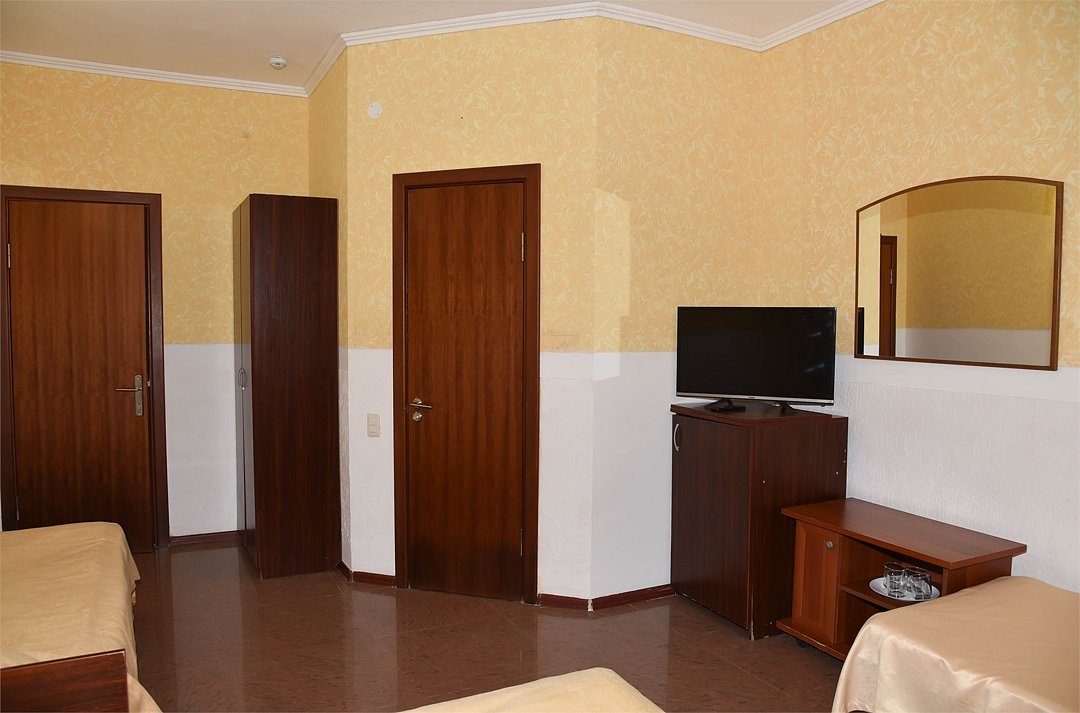 В номере три раздельные кровати, телевизор, кондиционер, мини-холодильник,шкаф, тумбочки, журнальный столик. Санузел в номере(душ).Стандартный 3 местный с раздельными кроватями