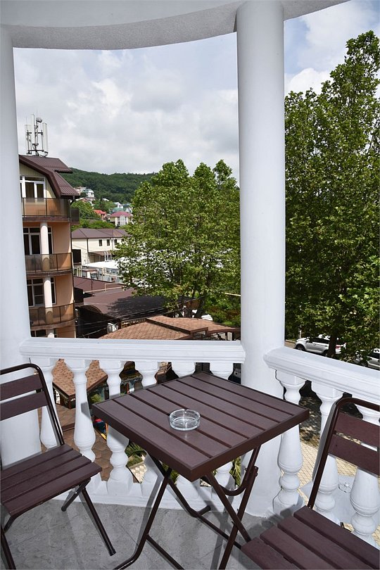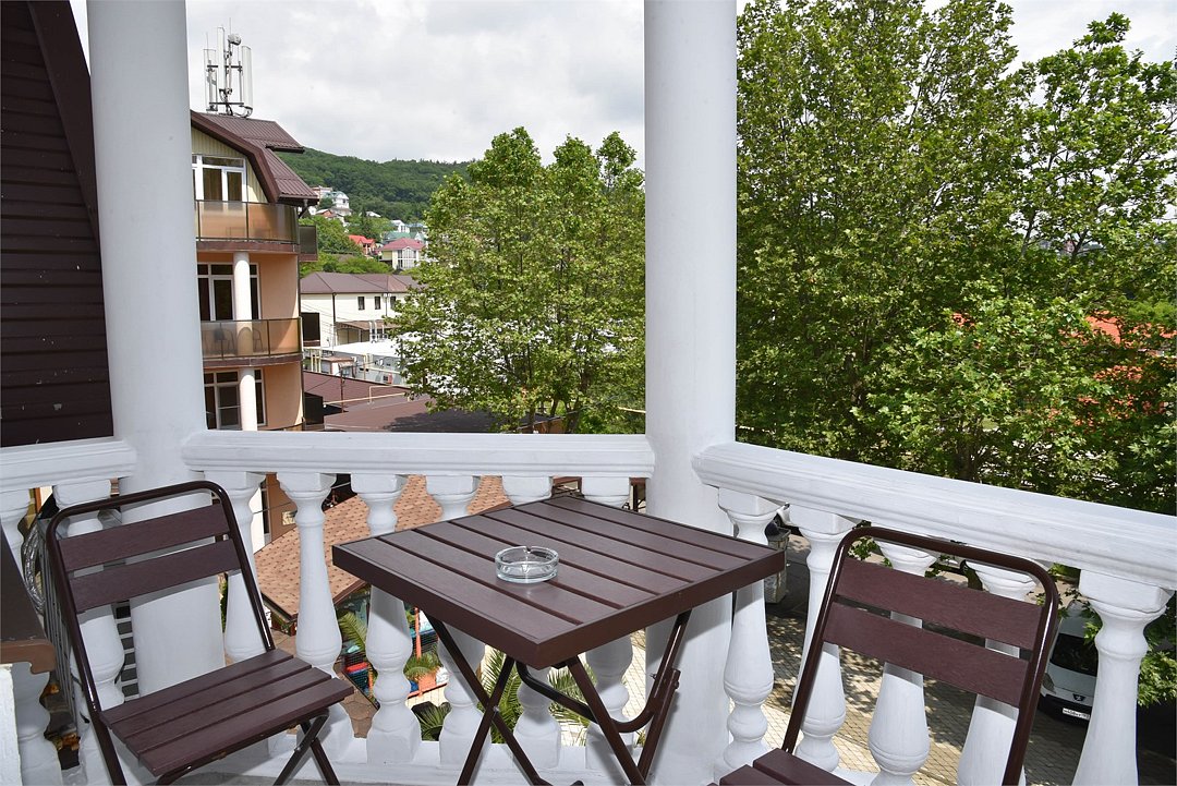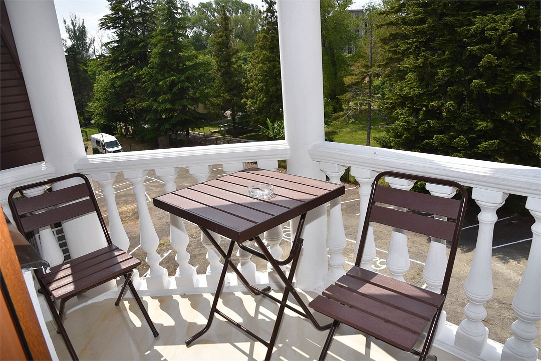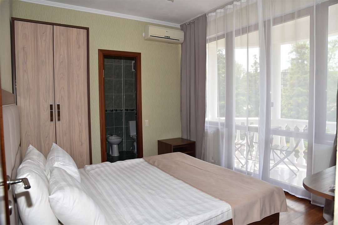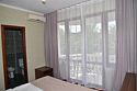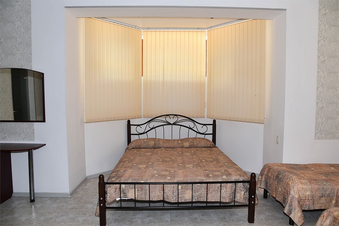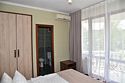 В номере двуспальная кровать,большой диван, телевизор, кондиционер, мини-холодильник, шкаф, тумбочки, столик с зеркалом, санузел в номере (душ).Четырехместный номер с балконом