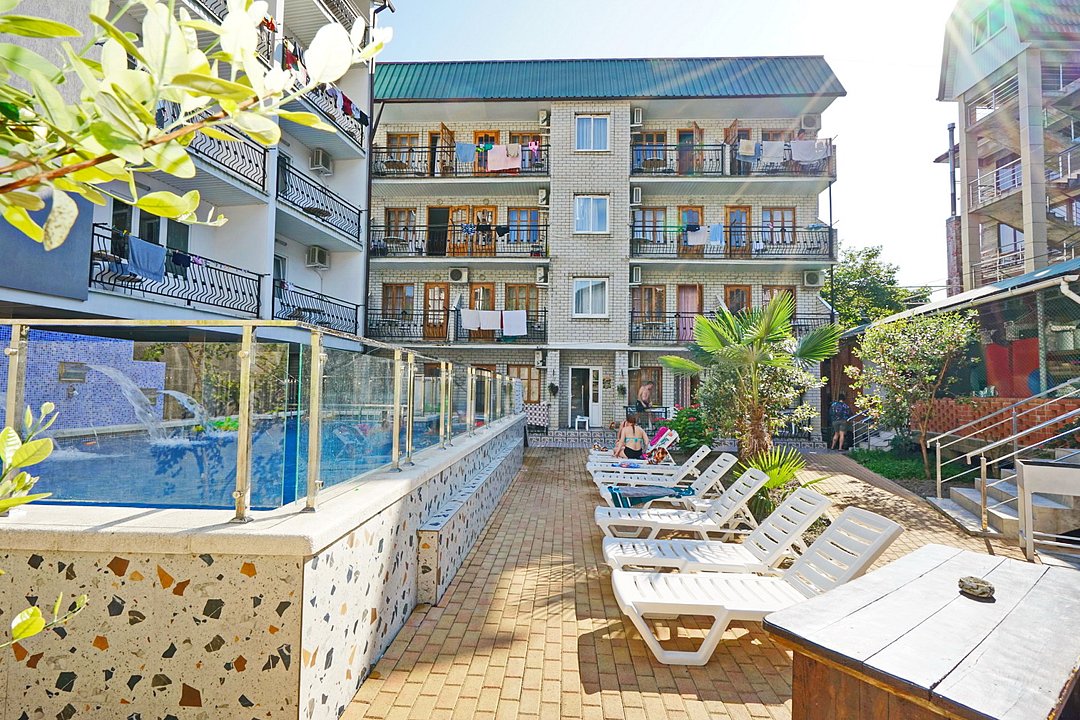 Гостевой дом расположен всего в трех минутах ходьбы от благоустроенного пляжа «Морская Звезда», где можно вдоволь насладиться солнцем и морскими волнами. В шаговой доступности находятся основные развлечения: аквапарк, океанариум, дельфинарий и пингвинариум. Также стоит посетить торгово-развлекательный центр «Бирюза», где расположены магазины и фуд-корт, что добавит удобства и разнообразия в отдых.