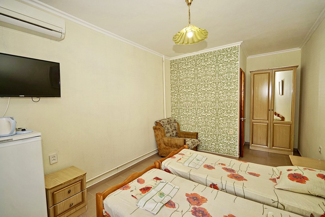 Уютный номер с гибким размещением: двуспальная и односпальная кровать или все односпальные. В вашем распоряжении — душ и туалет в номере, кондиционер, телевизор, фен, а также чайник и посуда.