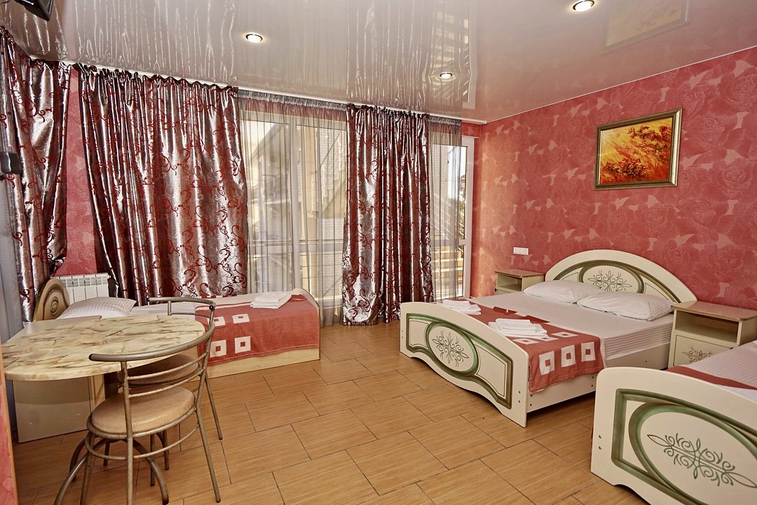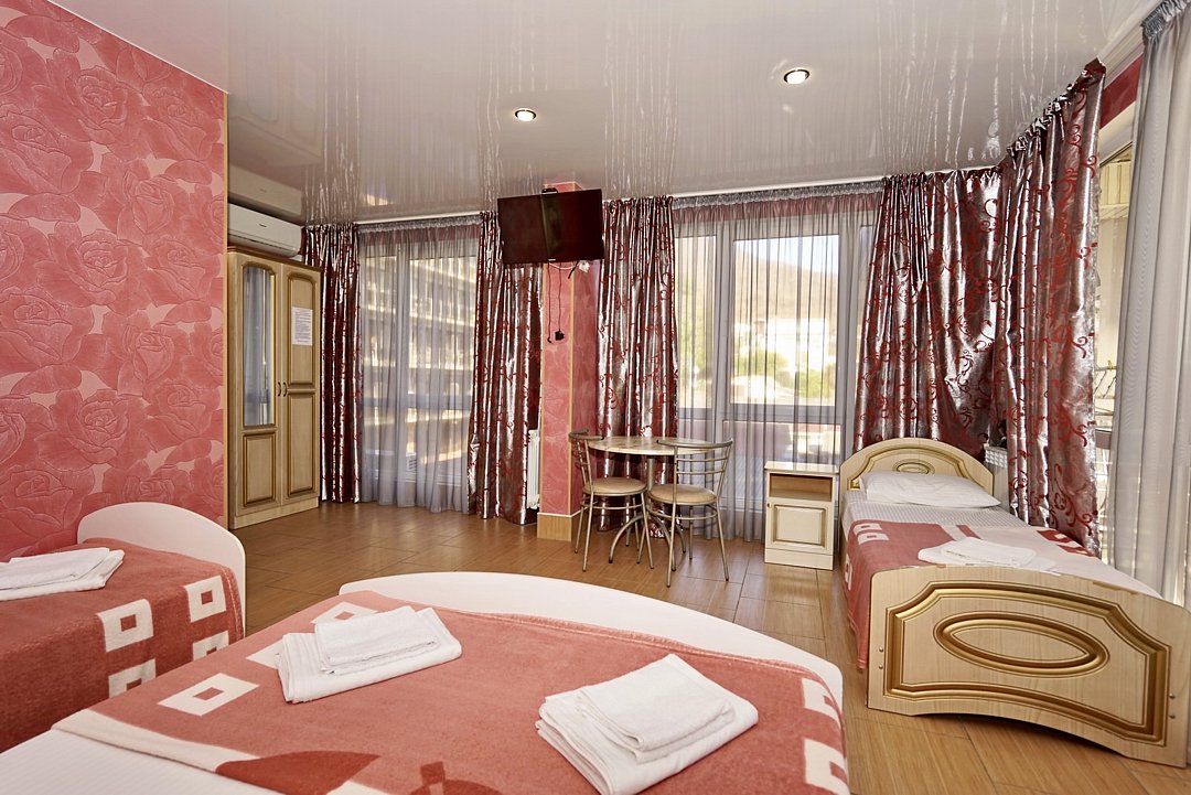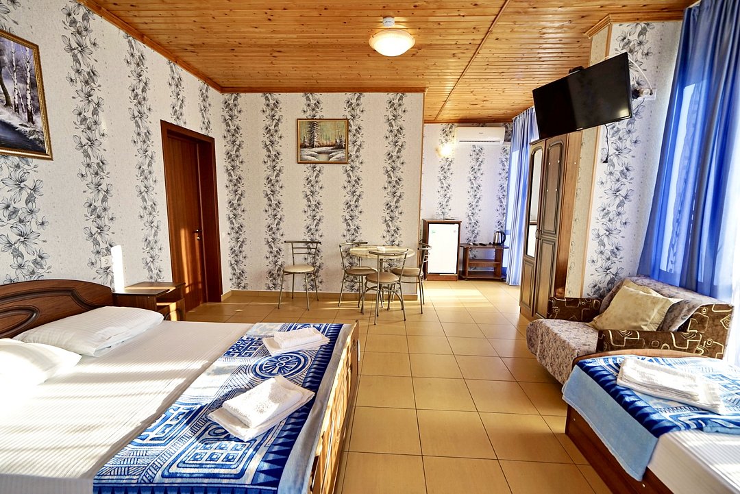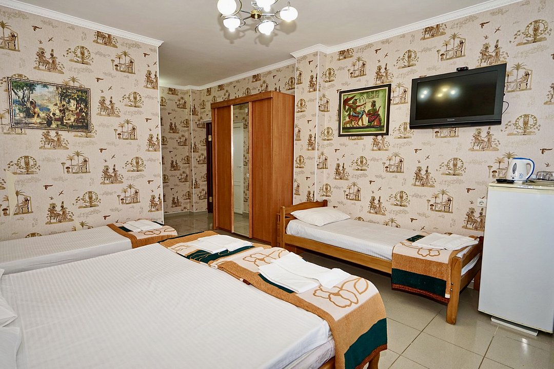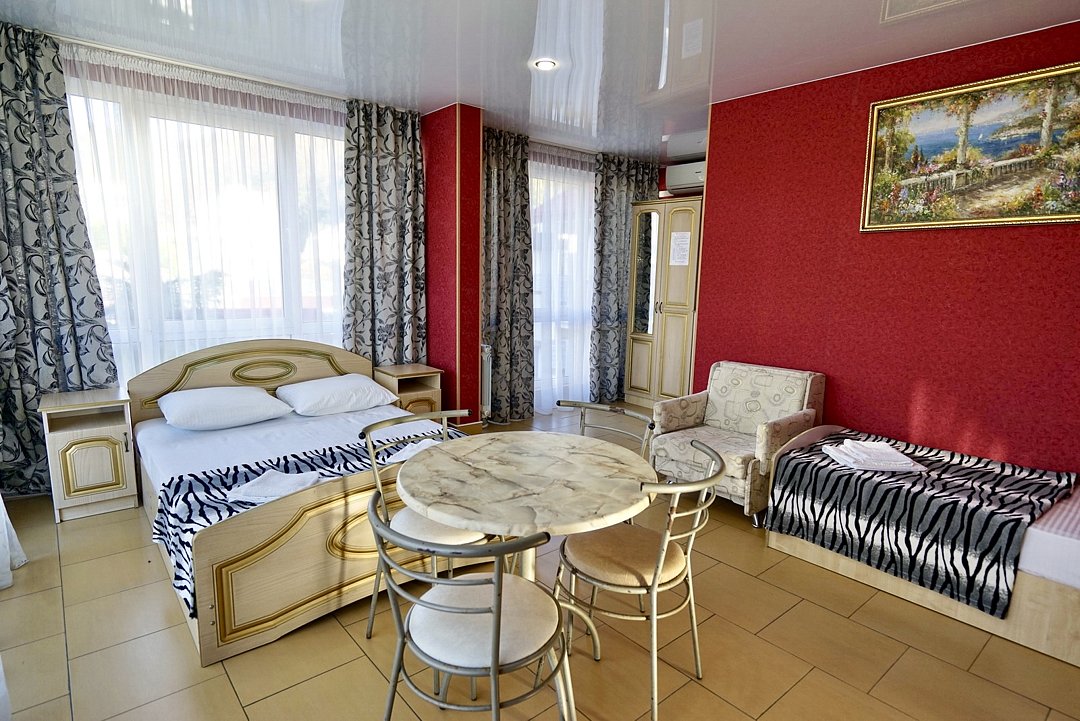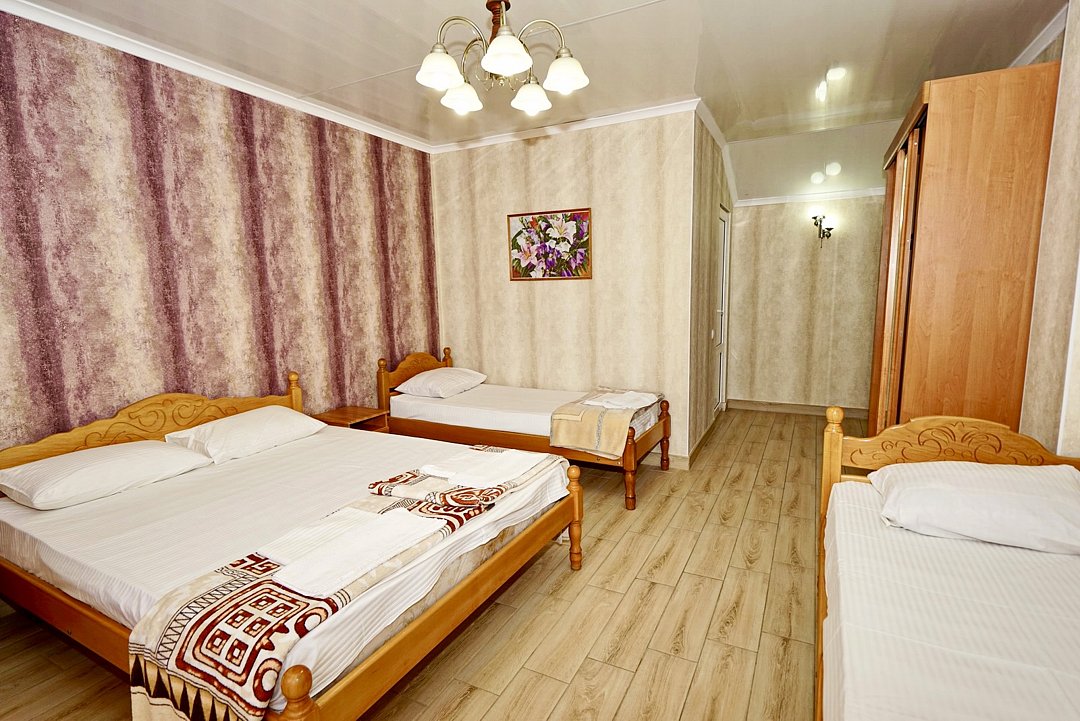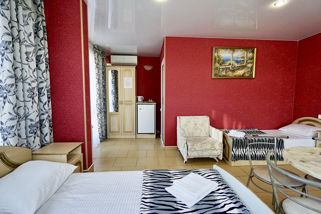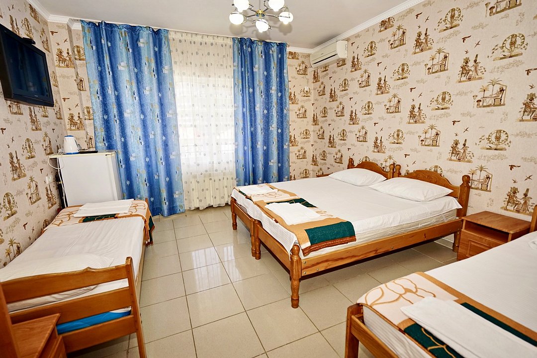 Гостевой дом «Вавилон» является превосходным выбором для тех, кто хочет насладиться близостью к морю и воспользоваться современной инфраструктурой для незабываемого отпуска. Здесь представлены номера различных категорий и вместимости, выполненные в светлых тонах и оснащенные всем необходимым для комфортного проживания: удобной мебелью, кондиционером, телевизором, холодильником и ванной комнатой.