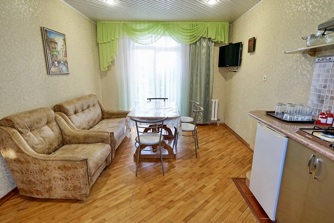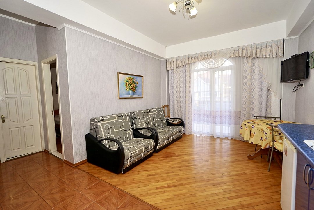 Двухкомнатный уютный номер с кухней. В вашем распоряжении — душ и туалет в номере, кондиционер, телевизор, фен, балкон.