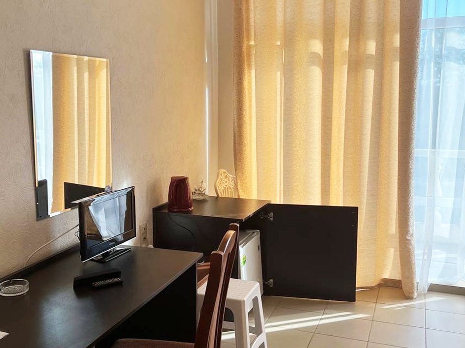 Двухместный однокомнатный номер с балконом. Номера располагаются на 2ом и 3ем этаже. В каждом номере собственный санузел с душем, кондиционер, холодильник и чайник. Гостевой дом на Камозина 5 располагается в пос. Лазаревское, на берегу горной реки Псезуапсе. Это тихий и красивый район у реки, окруженный зелеными горными склонами. В пешей доступности находится вся необходимая инфраструктура. Для гостей на автомобилях мы предлагаем бесплатную уличную парковку рядом с гостевым домом. Также в распоряжении гостей оборудован открытый бассейн во дворе и общая кухняВ номере